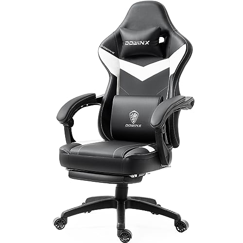 Dowinx Sedia Gaming con Cuscino a Molle Insacchettate, Massaggio da Gioco con Poggiapiedi, Ergonomica, Capacità di Carico 150kg, Bianco