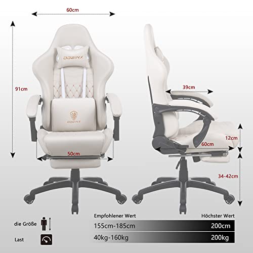 Dowinx Sedia da Gioco, da Ufficio, da scrivania con Massaggio e Supporto Lombare. Stile Vintage Sedia Girevole con Schienale Alto e con poggiapiedi Regolabile (Avorio)