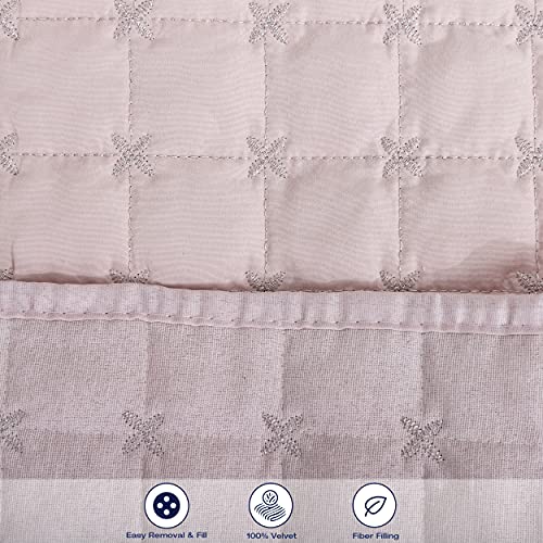 DOWRY WORLD Store, copriletto in raso di cotone, copriletto matrimoniale 260 x 260 cm, coperta trapuntata con cuscino 60 x 80 cm, copriletto trapuntato per tutto l'anno (cipria)