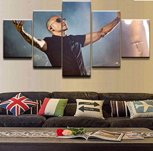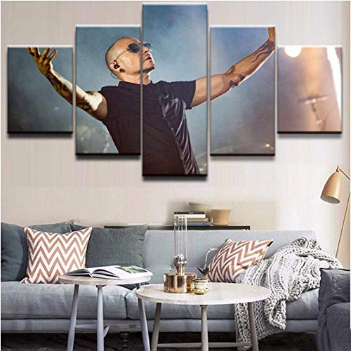 DPFRY Tela Pittura HD Stampato Chester Bennington Poster Home Wall Art Decorativo Frontman Pittura Linkin Park Immagini Modulari 5 Pezzi 150X100 Cm Senza Cornice