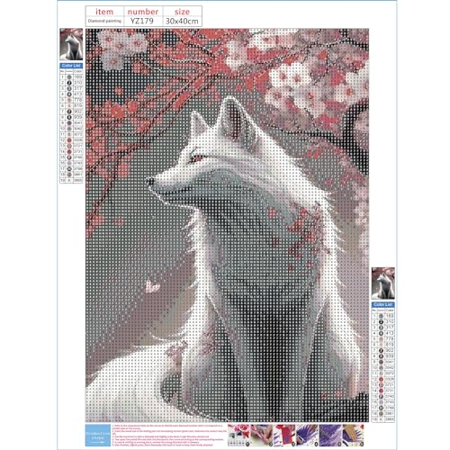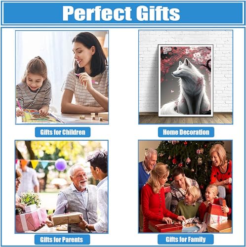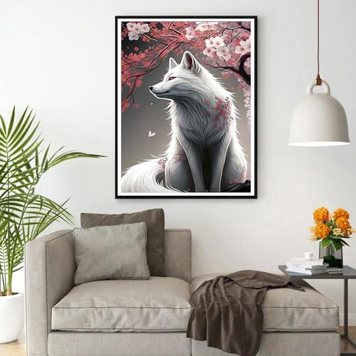DPHERO 5D Diamond Painting Kits for Adults,White Fox Diamond Art Kits for Kids Beginners,Round Full Drill Fox Diamond Painting Art,DIY Paint with Diamonds Flowers Gem Painting Art 12x16 inch