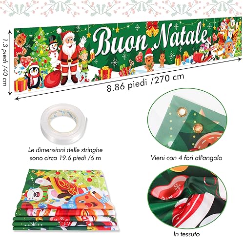 【Lungo Buon Natale Striscione in Italiano】Riceverai 1 striscione in tessuto (270 * 40 cm), 1 nastro (6 m per nastro). Italiano Natale striscione ideale per la decorazione di festa di Natale, decorazione per festa di Natale, decorazione per interni e esterni per Natale.
