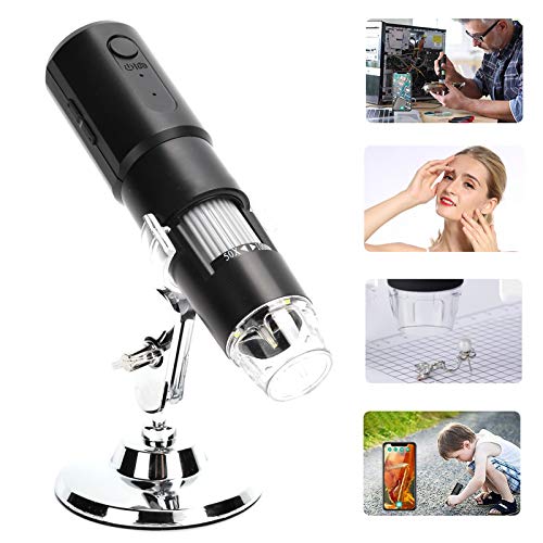 Dpofirs Microscopio WiFi Wireless Multifunzionale con Zoom 1000X, microscopio ingranditore Portatile con Supporto Girevole da scrivania, Adatto per l'ispezione di Gioielli