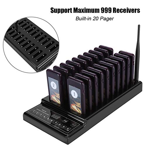 【Sistema di Chiamata Wireless】 Una base di pulsanti di chiamata wireless con tastiera a 999 canali e 20 cercapersone wireless, migliorando notevolmente l'efficienza del lavoro, riducendo al minimo il numero di persone in attesa, riducendo la confusione del personale, migliorando l'ambiente, informa le persone più velocemente, riduce i costi del personale e migliora l'efficienza del lavoro, migliora l'immagine del ristorante.