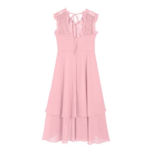 DPois Abito da Sposa Bambina Elegante Chiffon Stile Impero Vestito da Cerimonia Pizzo Vestito da Principessa Damigella d'Onore Matrimonio Nuziale Nozze Sera Battesimo Rosa 6 Anni