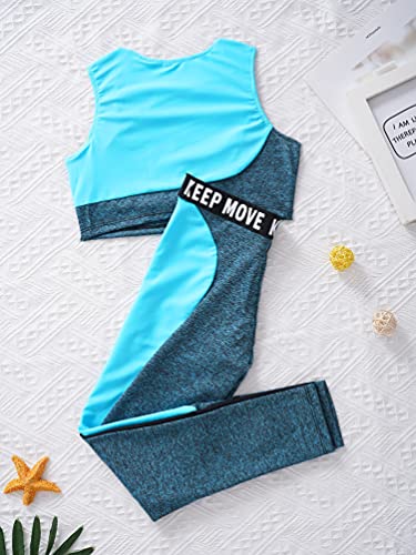 DPois Bambina Tuta da Ginnastica Artistica Completi Sportivi Crop Top Corto e Leggings Aderente Canotta e Pantaloni Lunghi Sportivi Yoga Danza Palestra Fitness Workout Blu 12 Anni