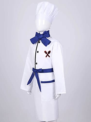 DPois Costume da Cuoco Bambini Unisex Carnevale Costume Cuoca Bimba Chef Cosplay di Halloween Gioco di Ruolo Cottura Grembiule Cappello Cucina Giocattolo per Fotografia Blu 3-4 Anni