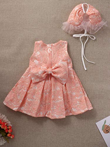 Baby Girls girocollo senza maniche in pizzo ricamato Bowknot con cappello abito da principessa