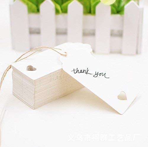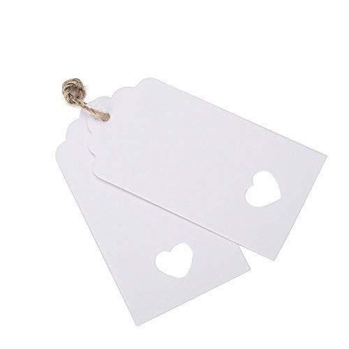Dproptel - Etichette rettangolari in carta kraft, stile vintage, con adorabile ritaglio a cuore, da usare per bomboniere matrimoniali o come targhette per i prezzi, con 20 m di spago in iuta. Utili anche come etichette dei bagagli e per il fai da te: 100 pezzi da 4 x 9 cm White