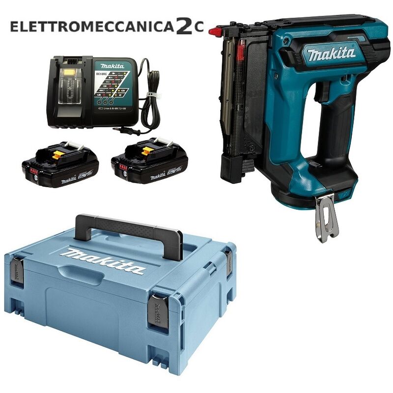 DPT353RAJ Spillatrice 18v Caratteristiche Spilli 23gauge Impugnatura ergonomica rivestimento soft grip Interruttore a doppia leva che previene operazioni accidentali LED di illuminazione Regolazione di profondità Solo accoppiamento legno su legno Dati tecnici Tensione 18 V Capacità 2,0 Ah Peso (EPTA) 2.7 kg Larghezza spilli 0.6 mm Capacità contenitore 100 Lunghezza spilli 15-35 mm Dotazione 2 batterie 18v-2Ah Caricabatteria Valigetta Makpac