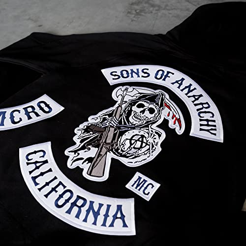 DPX-1 Sons of Anarchy Patch Ricamato con Cappuccio (s-2 x L) Fully Screen Accurate Toppe. Redwood Original Jax Teller Reaper MC Cut