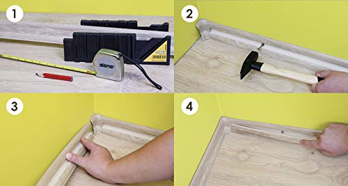 Importante: per battiscopa da 2 m 5 tasselli + 5 viti gratis. I battiscopa hanno una tolleranza di lunghezza di +/- 1,5%. - Le immagini e i colori dei nostri prodotti possono differire leggermente da quelli mostrati nelle immagini (a causa di diverse condizioni di illuminazione, ecc.)