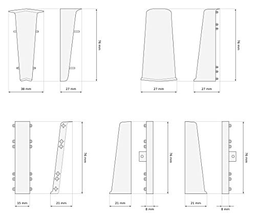 Importante: per battiscopa da 2 m 5 tasselli + 5 viti gratis. I battiscopa hanno una tolleranza di lunghezza di +/- 1,5%. - Le immagini e i colori dei nostri prodotti possono differire leggermente da quelli mostrati nelle immagini (a causa di diverse condizioni di illuminazione, ecc.)