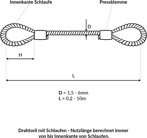 ✅ Qualità del marchio DQ-PP: corde in acciaio inox di alta qualità con due passanti identici - per un ulteriore rinforzo gli occhielli vengono fissati con morsetti idraulici pressati (manicotti a pressione) - Le nostre funi metalliche sono pressate con pressatrici idrauliche in rame per garantire una qualità senza interruzioni.
