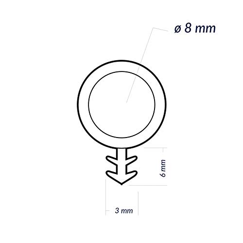 DQ-PP Guarnizione per tubo | Nero | 10 metri | Gomma TP| STD-03 | Diametro del tubo: 8 mm larghezza della scanalatura: 3 mm | Guarnizione in gomma per porte e porte