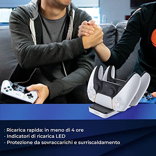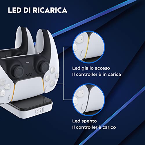 DR1TECH GamePow+ Base di Ricarica per Dualsense PS5 con Ricarica Rapida - Doppio Caricatore Controller Wireless per PS5 con Plug Removibili