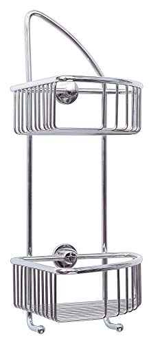 Tesa Draad Doppia Mensola Angolare per Doccia - Mensola in metallo inox cromato - senza forature - Rimovibile senza tracce - Tenuta fino a 10 kg - 180 mm x 425 mm x 205 mm