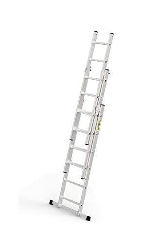 DRABEST Scala Industriale Multiuso in Alluminio 3x6 Gradini BASIC Scala Allungabile max 150 kg Gancio Gratuito