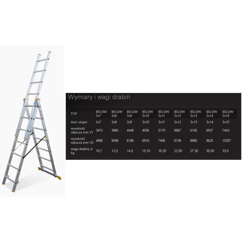 Drabina aluminiowa 3x10 stopniDRABINA ALUMINIOWA 3x10 STOPNI . Con 3 anni di garanzia e con EAN: 5907666203132