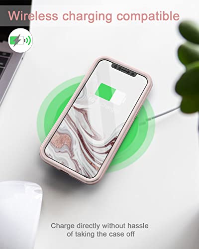 Dracool Cover Compatibile con iPhone 12/iPhone 12 Pro Custodia in Silicone Liquido 360 Gradi Antiurto con Protezione Integrata dello Schermo Cover in Gomma Gel Ultra Sottile Custodia - Rosa