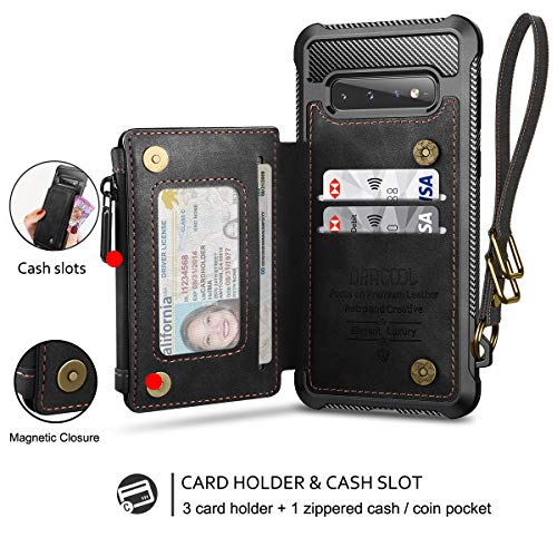 Dracool Cover per Samsung Galaxy S10 Custodia in Pelle Premium 360 Gradi Antiurto Silicone Bumper RFID Protezione con Porta Carte Wallet Case Portafoglio Libro Magnetica Cover per S10 - Nero