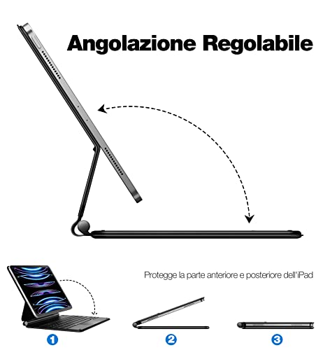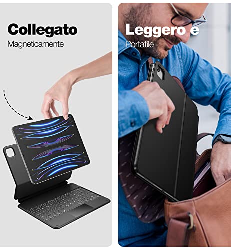 Dracool Custodia Tastiera per iPad Air 5 2022 / iPad Air 4 2020 10.9 e iPad Pro 11 2022/2021/2020/2018 Tastiera Trackpad Magic Type Keyboard Supporto Magnetico Retroilluminata Italiano QWERTY - Nero