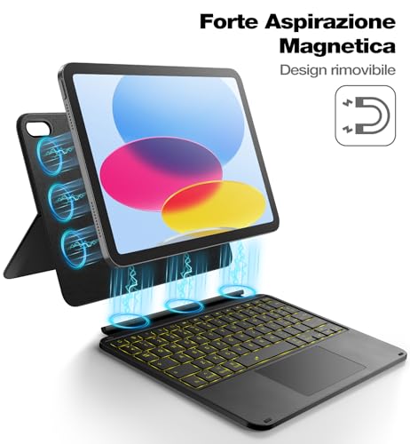 Dracool Custodia Tastiera per iPad 10ª Generazione 10.9" 2022 Tastiera con Trackpad Magic Style Keyboard Folio Magnetico Rimovibile Supporto Regolabile Retroilluminata Sottile Italiano QWERTY - Nero
