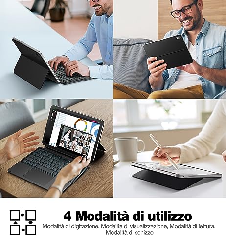 Trackpad Multi-touch: La custodia con tastiera è dotata di un ampio trackpad cliccabile ovunque, realizzato in vetro AG. Grazie ai controlli multi-gesture come lo scorrimento, il passaggio del dito e altro, il trackpad consente di navigare in modo fluido e preciso sul vostro iPad in un modo completamente nuovo, svolgendo perfettamente le funzioni di un mouse. La riga di funzioni a 14 tasti (scorciatoie per iPadOS) consente di controllare facilmente i contenuti multimediali con un solo tocco.