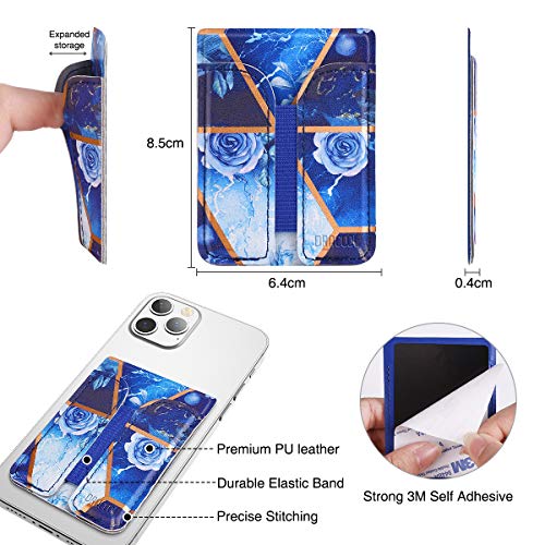 Dracool Porta Carte di Credito per Cellulare Portafoglio Autoadesivo in Pelle Porta Tessere di Telefono Stick-on Carta di Credito ID Tasca Adesiva per iPhone Samsung Smartphone - Marmo Blu