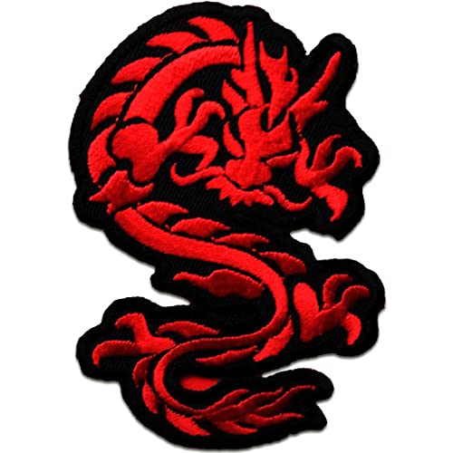 Drago Cinese - Toppe Termoadesive Patch Toppa Ricamate, Misura: 6,7 x 9 cm, Farbvariante:rosso