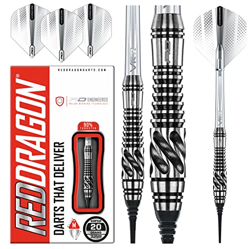 RED DRAGON Askari 18g Peso del Barilotto, 20g Peso Totale Softip Tungsten Darts con Voli e Albero