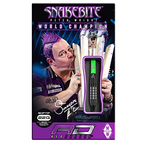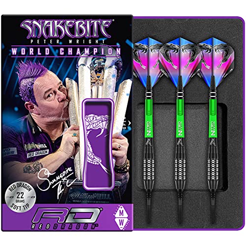 RED DRAGON Peter Wright Snakebite Black Strike 20g Peso del Barilotto, 22g Peso Totale Softip Tungsten Darts con Voli e Albero