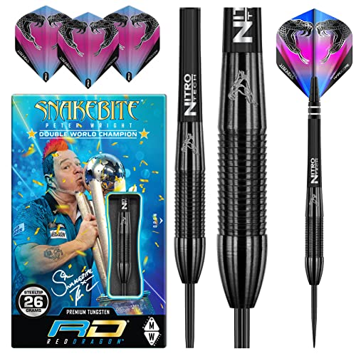 RED DRAGON Peter Wright Snakebite 3: 26g Freccette Tungsteno con Punta Acciacio, Voli e Freccette Aste