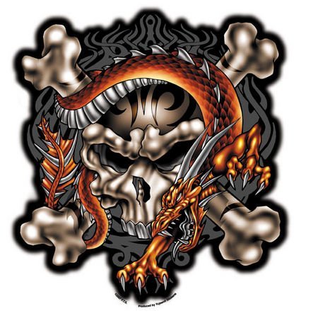 FTS - Dragon Skull Jumbo decalcomania Sticker Decal - 7"x8.5" - Weather Resistant, Long Lasting for Any Surface