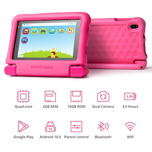 Dragon Touch Tablet Bambini 7 Pollici con Penna Android 10 Quad Core 2 GB RAM 32 GB ROM WiFi Doppia Fotocamera Touch Screen KIDOZ App con Kid-Proof Custodia (Kidzpad Y88X 7)