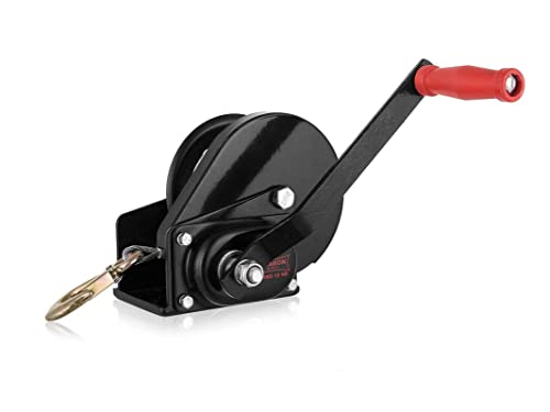 Dragon Winch Argano manuale 1200 lbs / 540 kg con gancio e Cavo in Acciaio 10m per piccole imbarcazioni, moto, veicoli e officina | Verricello manuale con Freno a frizione autofrenante