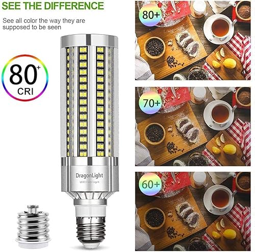 DragonLight 50W Lampadina a LED super luminosa, senza ventola (sostituisce 350 Watt), E27 LED con adattatore E40, 6000K, 6000 lumen per illuminazione geografica, garage, officina, luce stradale