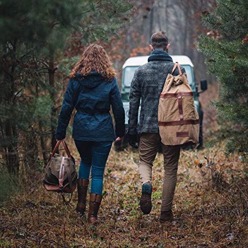 DRAKENSBERG Duffel Bag - Sacca da marinaio, borsone e zaino grande in stile rètro vintage, realizzato a mano in qualità premium, 60 L, tela e pelle, beige kaki, marrone, DR00105