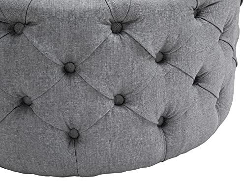 CLP Pouf Drancy in Stoffa Trapuntata I Sgabello Basso Rotondo di Design Disponibile in Diverse Grandezze I Poggiapiedi da Divano, Colore:Grigio, Dimensione:XL