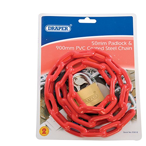 Draper 55818 - Lucchetto e catena in acciaio plastificata in PVC