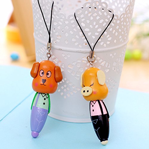 Drawihi, 6 penne a sfera a forma di animale, in legno, per studenti, carine e ciondolo