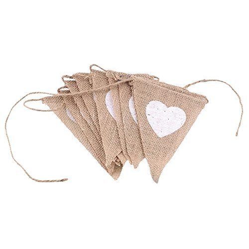 Drawihi - Striscioni vintage triangolari a forma di cuore, in lino, per feste di compleanno, matrimonio