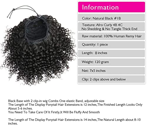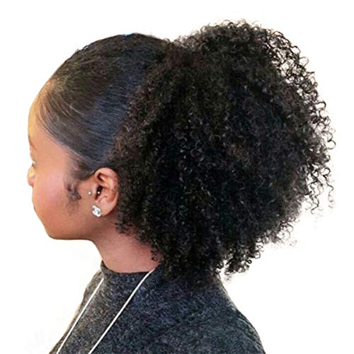 Drawstring Ponytail Afro Kinky Capelli Coda di Cavallo Estensioni Veri per le Donne Nere, Kinky Drawstring Ponytail Extension Capelli Veri 8 Pollici 90 g 1B # Nero Naturale