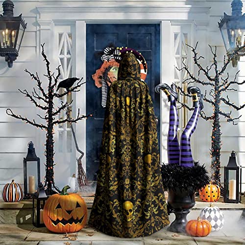 Dread Damasco Dorato Unisex Mantello Lungo con Cappuccio Halloween Mantello Strega Costume Partito Cosplay Mantelli Gaming Nero