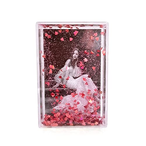 SH.DREAM Cornici glitterate, cornice trasparente con brillantini fluttuanti, romantici regali di San Valentino per coppie di amici di famiglia (cuore rosa glitter, 5 x 7,6 cm)
