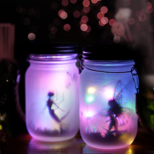 Design unico a lanterna solare La nostra squisita lanterna solare combina il barattolo di muratore smerigliato, le luci a LED luminose e le decorazioni delle fate per fare un'aggiunta distintiva per il vostro giardino. Quando queste lanterne si illuminano di notte, si illuminano come lucciole che circondano la fata, proprio come un paese delle fate. Emettendo un incredibile bagliore e una comoda illuminazione per la tua casa, rende il tuo giardino romantico e meraviglioso.