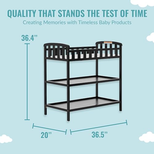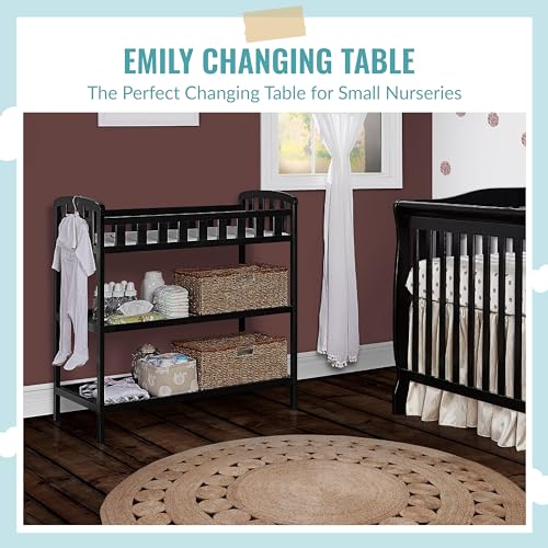 Dream On Me Fasciatoio Emily in nero, viene fornito con fasciatoio da 2,5 cm, dotato di due ripiani, fasciatoio portatile, realizzato in legno di pino neozelandese sostenibile