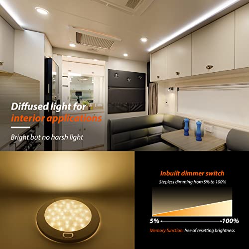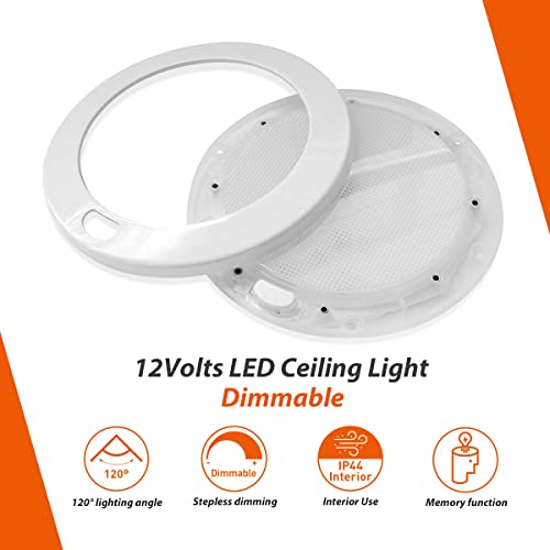 Dream Lighting Plafoniera LED Soffitto 12V Camper Barca Caravan Illuminazione Interna Dimmer Continuo IP44 Bianco Caldo