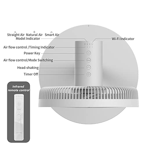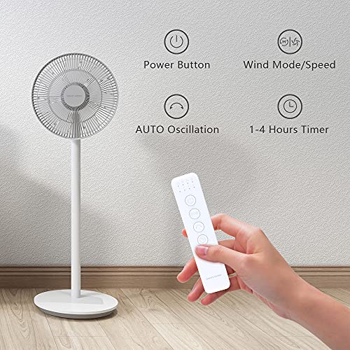Dream Maker Ventilatore a Piantana Motore DC 15W Ventilatore Silenzioso Ventola a 12 pale Funzione di Oscillazione di 140°, Ventola Regolabile in Altezza con Telecomando e Controllo Dell'app