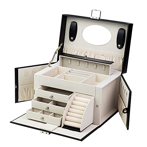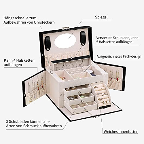 ADEL DREAM Portagioie Grande Chiudibile a Chiave con Specchio, Portagioie per Anelli, Orecchini, Nero